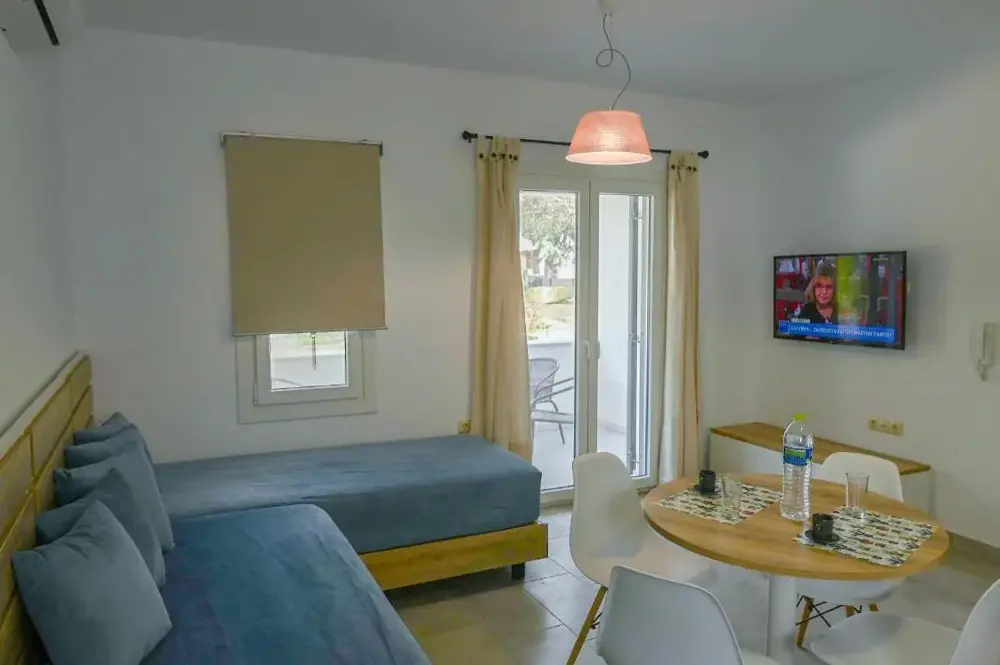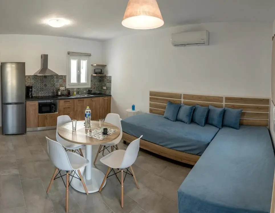 Comfortable Accommodations: Nissea Apartments in Naxos offers a sun terrace and free WiFi. Each apartment features air-conditioning, a balcony, and a private bathroom with a walk-in shower. Modern Amenities: Guests enjoy a fully equipped kitchen, private bathroom, and a terrace. Additional amenities include a hot tub, outdoor seating area, and free on-site private parking. Prime Location: Located 1.2 mi from Naxos Island National Airport, the property is close to Agios Georgios Beach (9-minute walk), Naxos Castle (less than 0.6 mi), and the Archaeological Museum of Naxos (less than 0.6 mi). Local Attractions: Explore nearby sites such as Portara (17-minute walk) and the Church of Panagia Mirtidiotisa (12-minute walk). Water sports and boating are available in the surroundings. Guest Satisfaction: Highly rated for its friendly host, convenient location, and nearby shops.